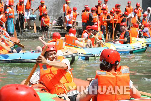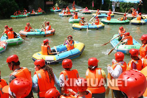 8月21日,游客在庐山石门涧风景区漂流。新华社发(张海岩摄)