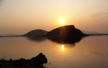 赤湖湖心大山、中山、小山岛三座小岛一字排列,大山因形似卧狮而又名狮子山,相传西汉功臣张良晚年归隐于此。