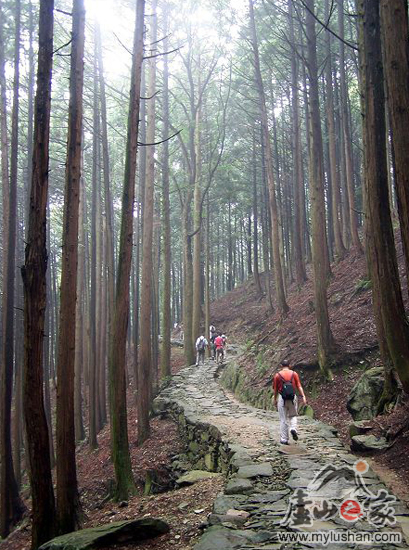庐山回龙路,位于庐山三宝树、黄龙寺景点之上,一条林阴石头阶。在山林之路漫步,别有一种情趣。
