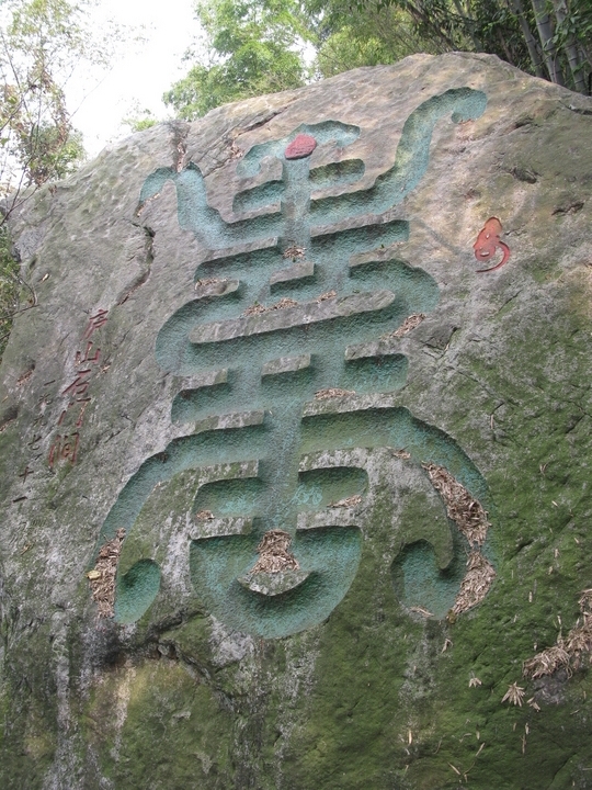 每字90公分风方,镌刻在36平方米的巨石上。书写恭正,苍劲有神。刻于嘉庆二十一年(1816)。在此,观看天池山、铁船峰对峙若门,故题“天阙”。作者蔡赢(1777-1857),字小露,浔阳人,颇爱山水,学术思想丰富,是位诗人、作家、书法家,著述达25种之多。