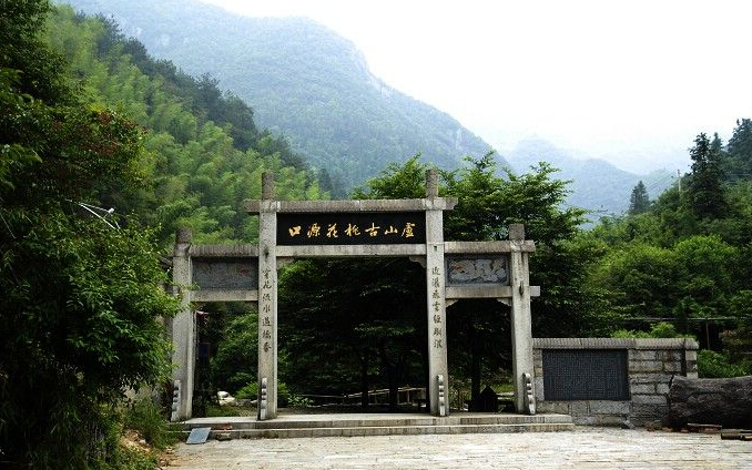 诗人陶渊明在著名的〖桃花源记〗中所写的桃花源就是以这里为原型之一而作的。桃花源是东林十八高贤、浔阳三隐(陶渊明、刘程之、周续之)之一刘程之所发现的。刘程之归隐后同大诗人陶渊明志趣相投,一样安贫,一块吟诗作赋,泉石自娱,没齿不谈世事,陶渊明有《和刘柴桑》“山泽久见招,胡事乃踌躇?直为亲旧故,未忍言索居。良辰入奇怀,挈杖还西庐。荒途无归人,时时见废墟。茅茨已就治,新畴复应畲。谷风转凄薄,春醪解饥劬。弱女虽非男,慰情良胜无。栖栖世中事,岁月共相疏。耕织称其用,过此奚所须,去去百年外,身名同翳如。”《酬刘柴桑》“穷居寡人用,时忘四运周。榈庭多落叶,慨然知已秋。新葵郁北牖,嘉穗养南畴。今我不为乐,知有来岁不?命室携童弱,良日登远游。”等诗相赠。永初二年(公元421年)诗人在《桃花源记》中称子骥为“高尚士也”,文末专门写了子骥寻找桃花源的情景。