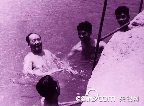 毛泽东在芦林湖游泳(1961年)望着在江心甩开膀子劈波斩浪的毛泽东,想想半山上演绎的那场有惊无险,我似乎若有所悟。毛泽东一生多次历险,无不化险为夷,这与他柔时湖上漾波,刚时江中劈浪的性格魅力必然联系呢!