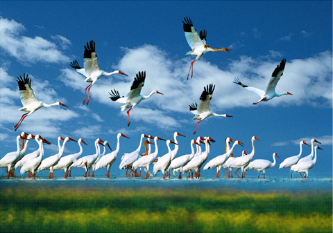 | | ,Poyang Lake is the largest fresh-water lake in China. Having experienced many geological changes, Poyang Lake is now wide in the south and narrow in the north, like a huge gourd tied on the waist of the Yangtze River. |