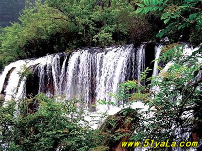 九寨沟最宽阔的瀑布叫诺日朗,诺日朗藏语中意指男神,也有雄伟壮观的意思,高约30米,宽达百米,水从静海穿林过滩慢悠悠地流来,凌空而下,银花四溅,那种纯净的色彩真是令人心醉。