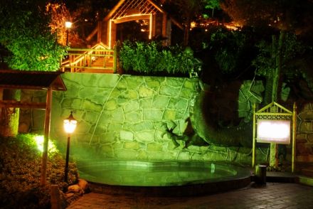 经过了两个多小时.我们意犹未尽地把大部份温池都泡了一遍了.看看时间已经十一点多了.老婆也累了.我们决定起身回客房了.回去后.老婆一直在讨论这次泡得很爽.下次有机会还想再去.只是唯一遗憾的是没有住在养生阁.(房间里面可以泡温泉的.房子在山顶上).有机会的话.我们下次一定住养生阁.第二天.我们吃完早餐后.坐朋友的车离开了龙湾.结束了这次温泉之旅.