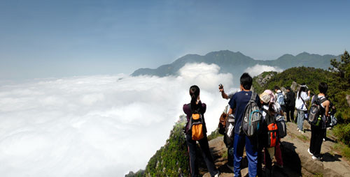 注释:大文豪苏东坡在《题西林壁》写道:“横看成岭侧成峰,远近高低各不同,不识庐山真面目,只缘身在此山中” 。从文字层面上理解,这是从自然和视觉角度来写庐山云雾的作用。庐山一年365天中平均有191天云雾与它朝夕相处,有雾日最高的年份达221天, 最少的年份也有158天。庐山云雾千姿百态,变幻无穷。雾来时,风起浪涌;雾去时,飘飘悠悠。雾浓时,像帷幕遮住了万般秀色;雾稀时,像轻纱给山川披上了一层飘逸的外衣。庐山云雾中最壮观的要算云海和瀑布云,一年四季都可看见。