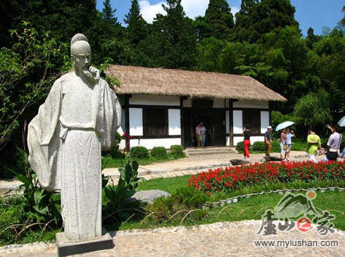 有一次,白居易来到山北的香炉峰下,被这儿的灵山秀水深深吸引,决意终老在此,当时,山侧有一位姓郑的寡妇,在这儿开了一块荒地,白居易就用在长安替人写匾时得来的三匹锦绢,把这块荒地买了下来,建了一座草堂,过起了隐居生活。