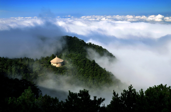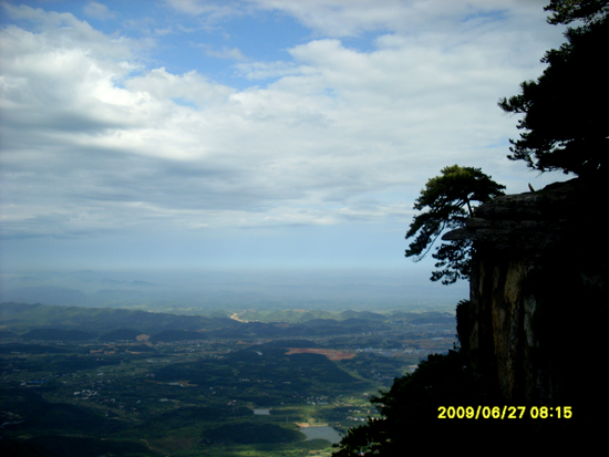 玉女便化成了大天池东面的锦绣峰,庐君变成了大天池西面的白云峰。他们日日夜夜,深,情相望。大天池西面半山腰的巨崖,就是金龙之首。因此,这座险峻的山崖,便叫龙首崖,也称舍身崖。