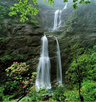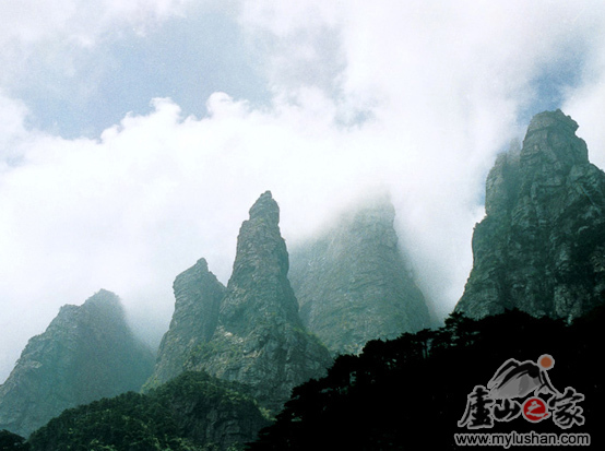 以后,秦始皇在马耳峰下坐过的那块巨石, 坡人们称为“秦皇石”秦始皇在攀山时洒下的汗水,化成了九奇蜂下的喷泉。他在汉阳峰顶淌下的眼泪,流向西南的,变成了有名的庐山瀑布;向东流去的,则汇成了有名的“三叠泉”了。