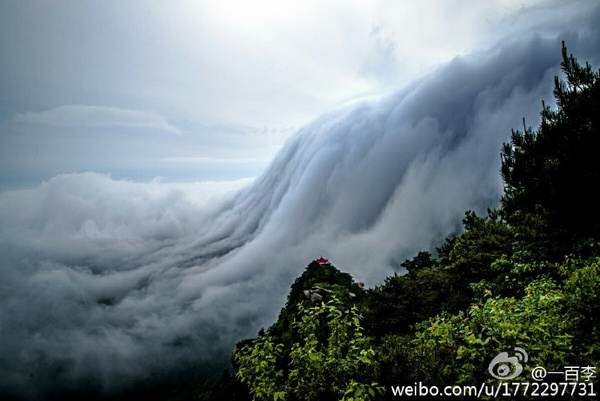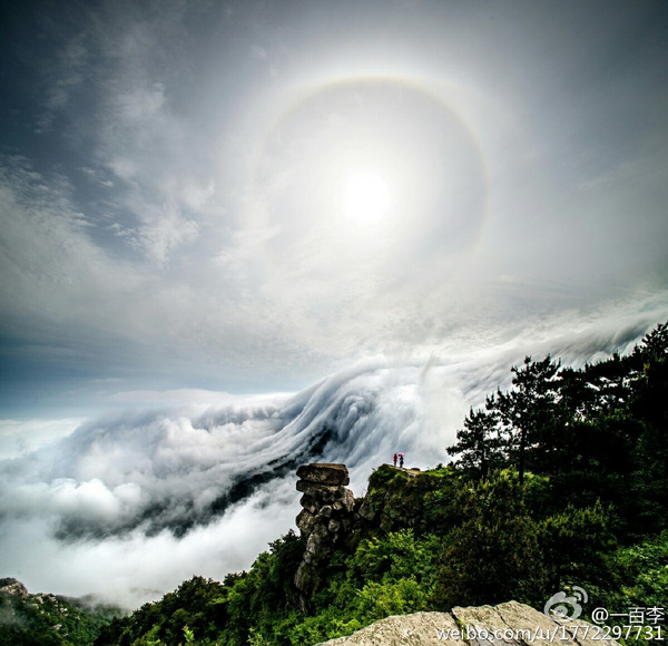 五月,微博网友“一百李”称:江西省庐山风景区百年不遇的奇景,在庐山领袖峰出现日晕景致。许多百岁老人都未听说过这一景观,实属罕见。 昨天江西庐山小天池方向出现百年不遇的奇景,奇葩的瀑布云出现时伴随着日晕景色。当地年长老人都没有见过此景致,罕见景色再次证明了庐山环境和植被茂盛相关。