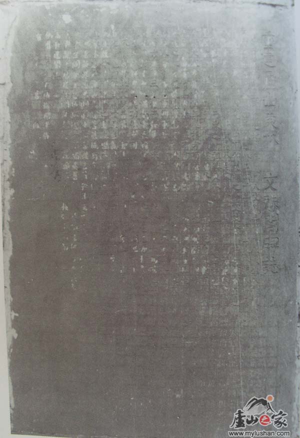 此碑为青石素碑,无首及座,碑高135厘米,宽90厘米,嵌于砖墙之内。碑名《重建庐山东林寺文殊阁碑记》,右置阴刻竖写,字径6厘米。碑正文楷书直列23行,字径3厘米,满行38字。全义抄录如下: