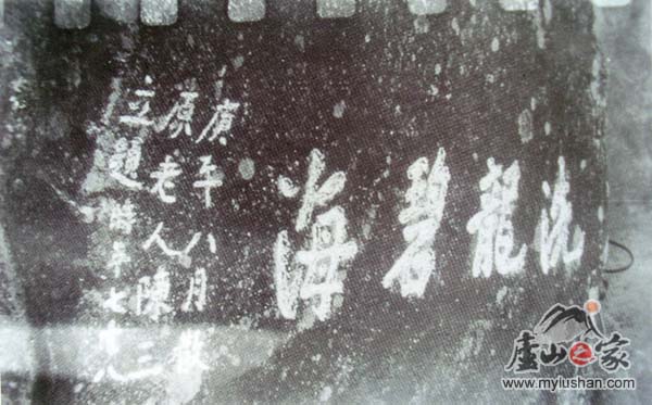 民国刻石。位于王家坡碧龙潭旁,行书浅阴刻横写字径32厘米。款“庚午年八月散原老人陈三立题时年七十八”,字径10厘米。