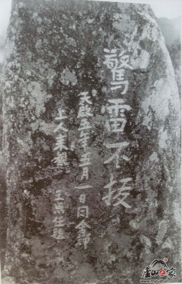 明代刻石。位于仰天坪云中寺,楷书阴刻竖写,字径19厘米。款“天启五年五目一日同舍禅上人来观,王思任任题”,款字径8厘米。