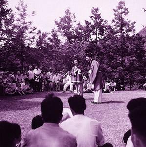 著名黄梅戏表演艺术家严凤英等在庐山植物园草坪上表演