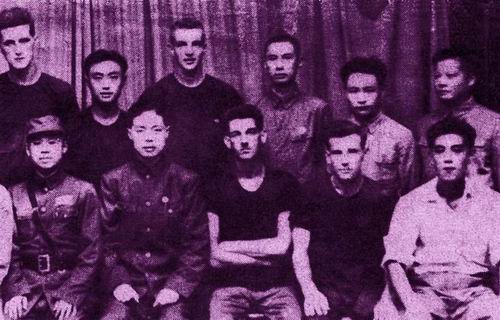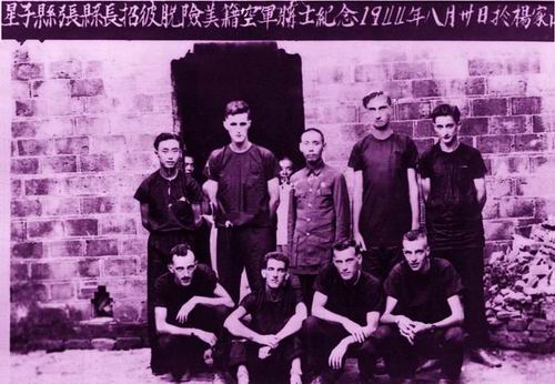 张县长(后排第三人)招待脱险的美国飞行员(1944年)