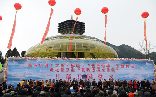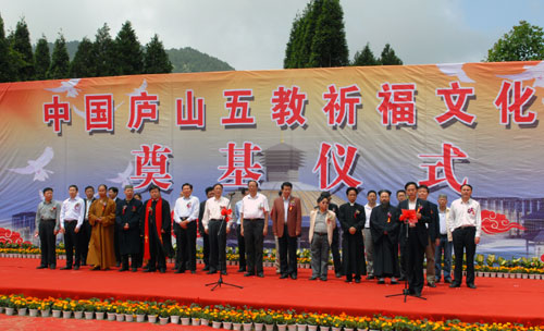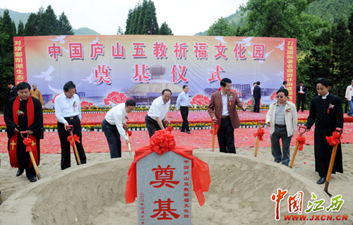 2010年6月11日,庐山五教祈福文化园奠基仪式在庐山,经济作物试验站隆重举行。五教祈福文化园项目以五教祈福为主题,以“风调雨顺、国泰民安、社会和谐、世界和平”为福祉。园内建有祈福大钟,上有佛教、道教、基督教、天主教、伊斯兰教等五教标志图案及祝福语。