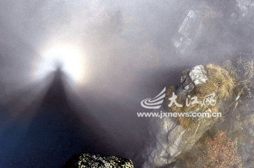 昨日,庐山是大晴天,锦绣谷里云雾缭绕。下午2时许,谷中出现佛光,令人称奇的是“佛”对面恰有一个“孙悟空”,从孙大圣枯黄毛发,虔诚的目光中不难看出,它等待这一时刻已经多时。佛光持续1小时,不少游客连称看到了奇景。